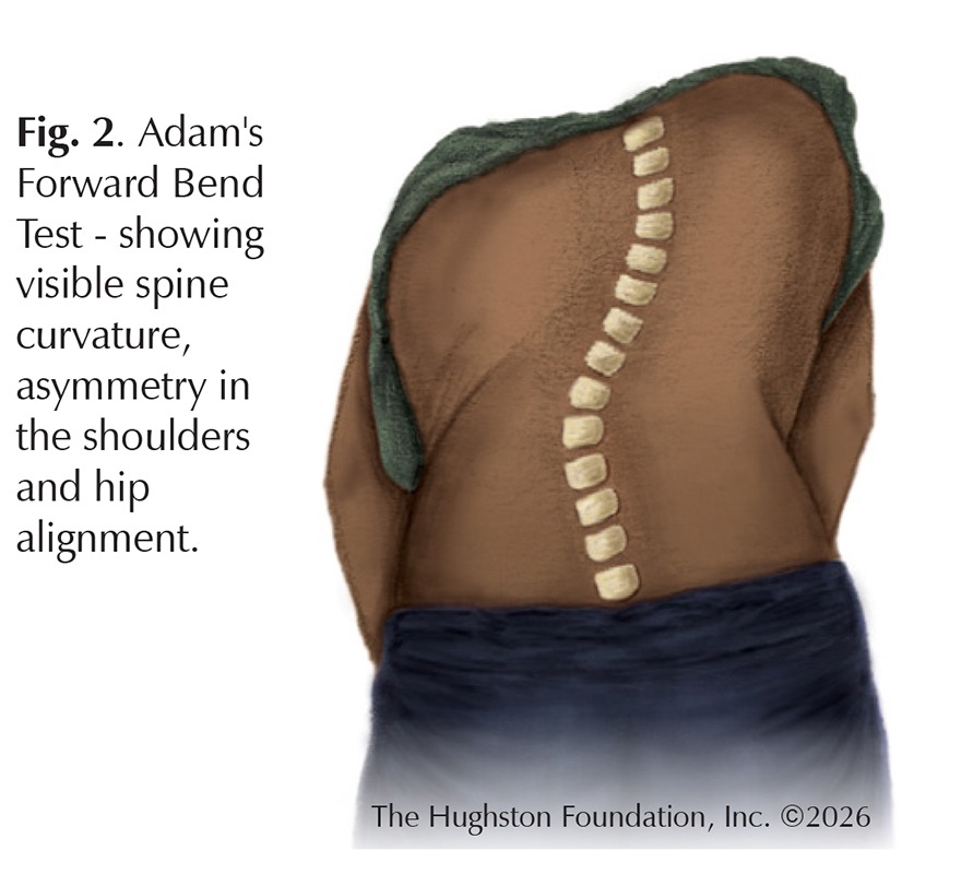 The physical examination includes the Adam’s Forward Bend Test, which continues to be the cornerstone of clinical screening for the disorder (Fig. 2). The patient bends forward at the waist with their feet together, arms hanging down, and knees straight. From this position, the examiner can easily observe any asymmetry in the rib cage or lumbar region, known as a rib hump, which indicates rotational deformity of the spine.