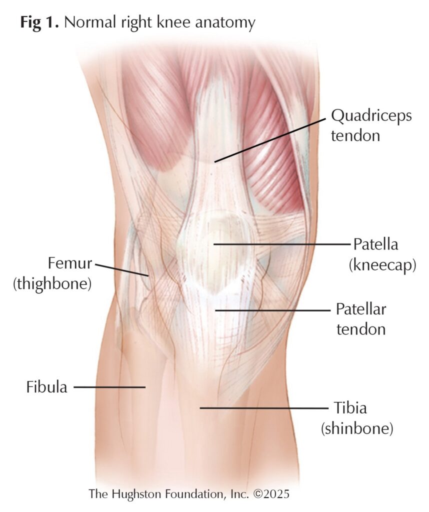 The patellar tendon connects the kneecap (patella) to the shinbone (tibia) and attaches to the tibial tuberosity (the bump of the shinbone just below the knee) (Fig. 1). When children perform movements like running or jumping, the quadriceps muscles contract, pulling on the patellar tendon, and tugs on the tibial tuberosity, which is located over a growth plate. Performing these movements repeatedly places a lot of stress on the knee. This continual stress can cause inflammation that irritates the growth plate, eventually leading to an overuse injury² (Fig.2).